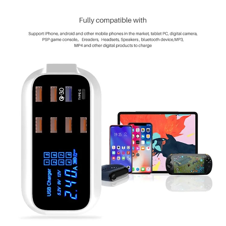 - سایر توضیحات:ابعاد 138x75x50 میلی متر وزن 280 گرم ولتاژ ورودی 100-2400 ولت ولتاژ خروجی 5 ولت شدت جریان خروجی 1.0 آمپر مخصوص موبایل , 2.4 آمپر مخصوص تبلت و موبایل , 5.0 آمپر مخصوص تبلت و موبایل تعداد درگاه خروجی 8 عدد نوع درگاه خروجی USB 2.0 , USB 3.0 , USB-C کابل همراه AC قابلیت های ویژه امکان شارژ کردن سریع تر موبایل (با شدت جریان 2.0 آمپر و بالاتر) باتری گوشی های موبایل معمولی با شدت جریان ورودی 1.0 آمپر هم شارژ می شوند اما شدت جریان 2.0 آمپر و بالاتر باتری را سریع تر شارژ می کند. این ویژگی در بسیاری از پاوربانک ها و شارژرها با عنوان «Fast Charging» شناخته می شود.