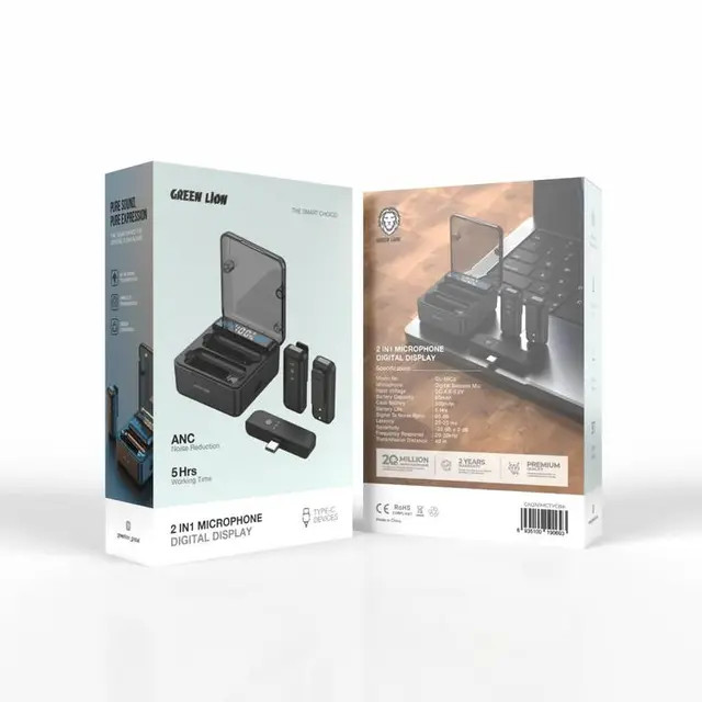 میکروفون یقه ای گرین لاین Green Lion 2 in 1 Microphone Digital Display دارای ۲ فرستنده