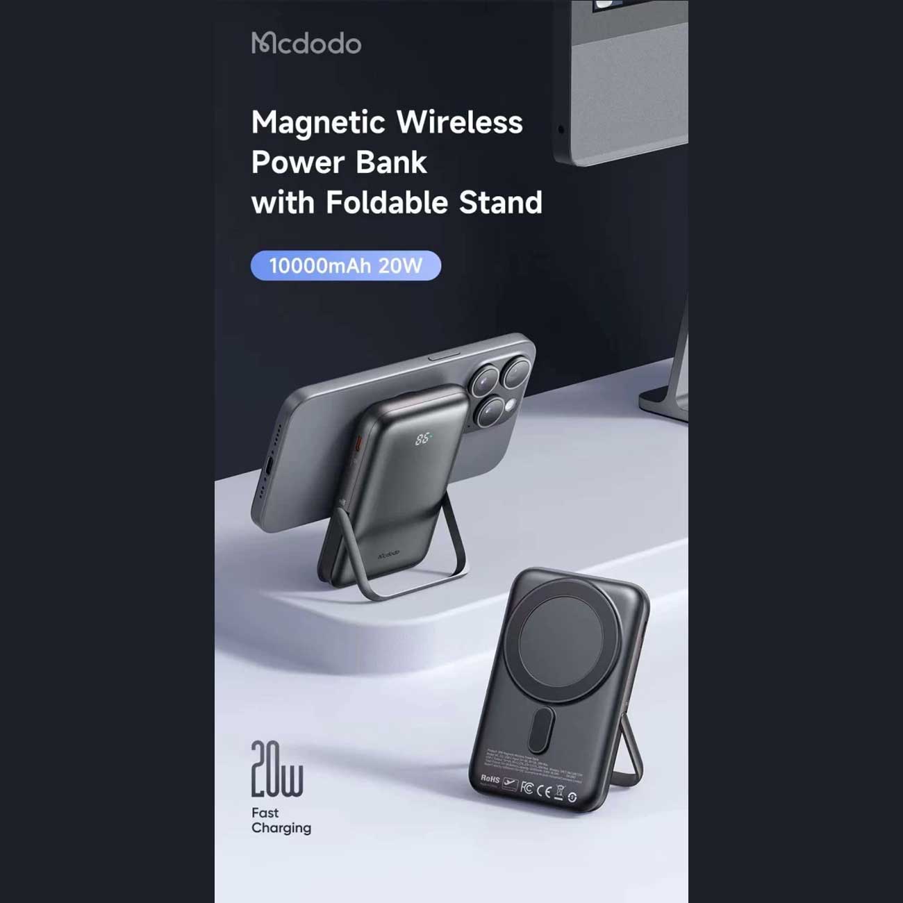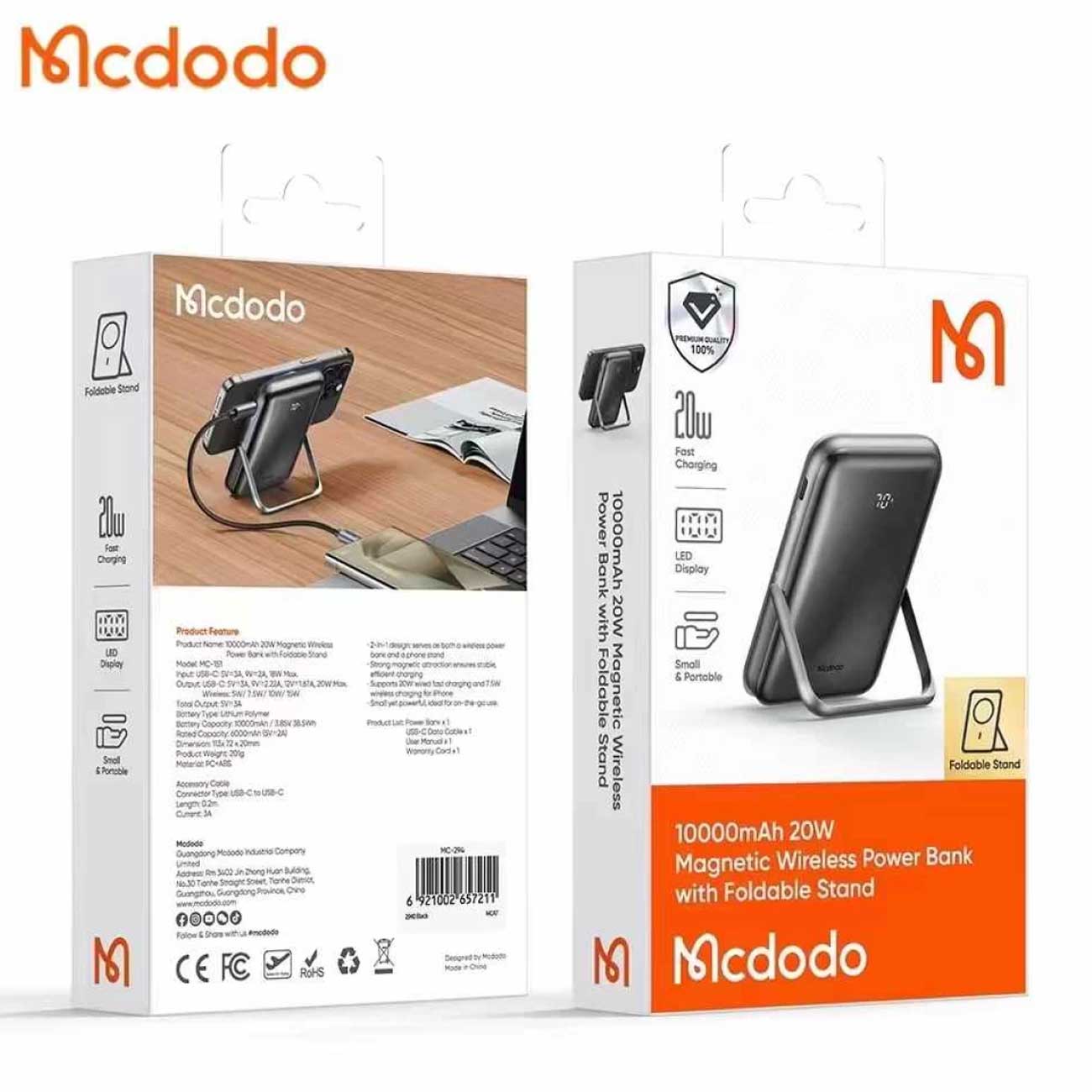 پاوربانک وایرلس 20 وات و تایپ سی 20 وات فست شارژ 10000 مک دودو