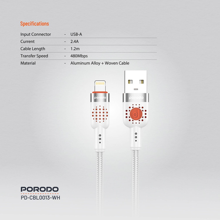 کابل شارژ USB-A به لایتنینگ پرودو مدل Braided طول ۱.۲ متر