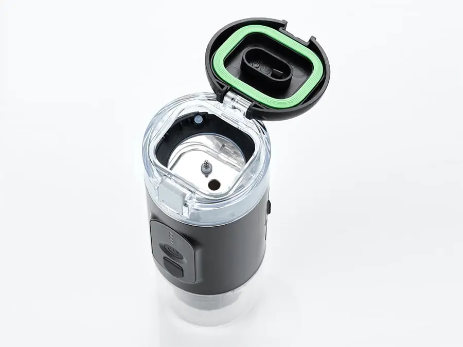 این اسپرسو ساز شارژی دارای مخزن آب 60 میلی متری برای ساخت اسپرسو است. همچنین در این اسپرسو ساز برای ساخت اسپرسو میتوان هم از کپسول و هم پودر قهوه استفاده کرد (دستگاه پودر را از فیلتر عبور میدهد ).
